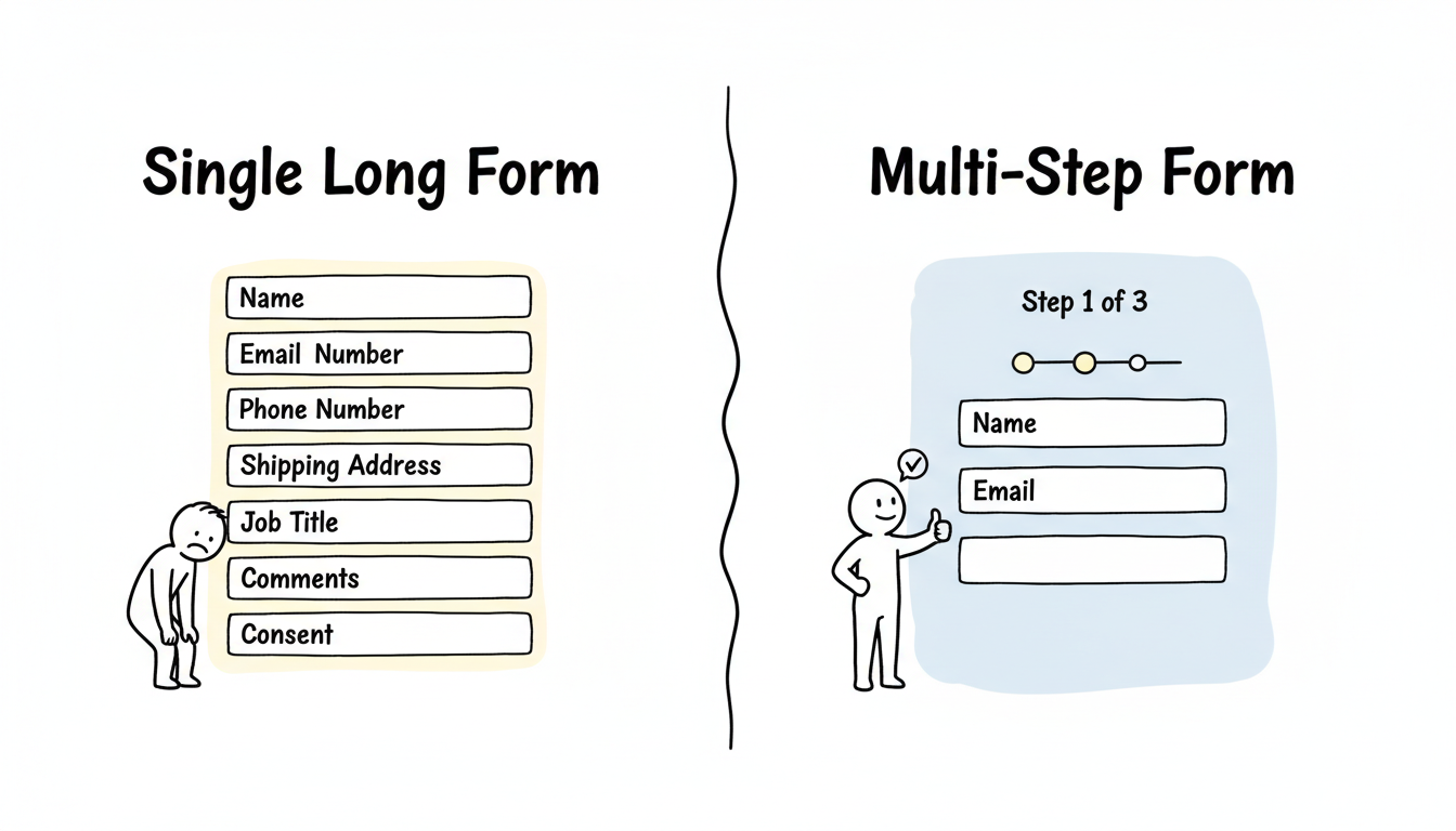 Through experimentation, we discovered that by switching to a multi-step form (seen below) we were able to double conversion rates for a number of our clients.