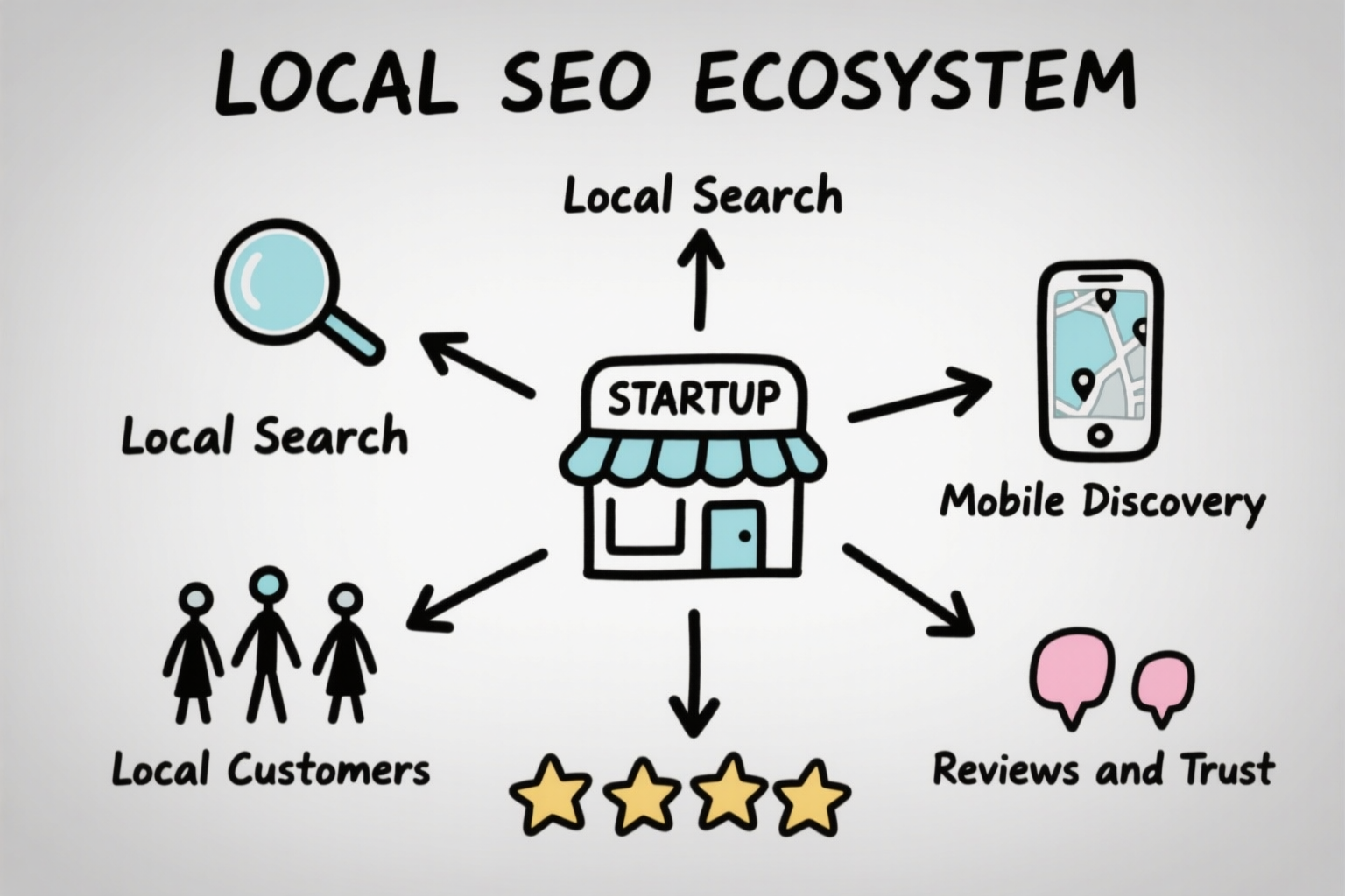 Local SEO involves various strategies, such as optimizing website content with location-specific keywords, creating and optimizing Google My Business listings, and generating positive reviews from local customers. These tactics help startups establish a strong online presence in their target market, making it easier for potential customers to find them.