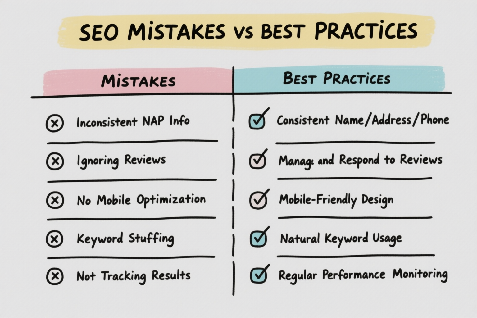 While implementing local SEO tactics, startups must be aware of common mistakes that can hinder the success of their strategy. By avoiding these missteps, startups can maximize the effectiveness and efficiency of their local SEO efforts: