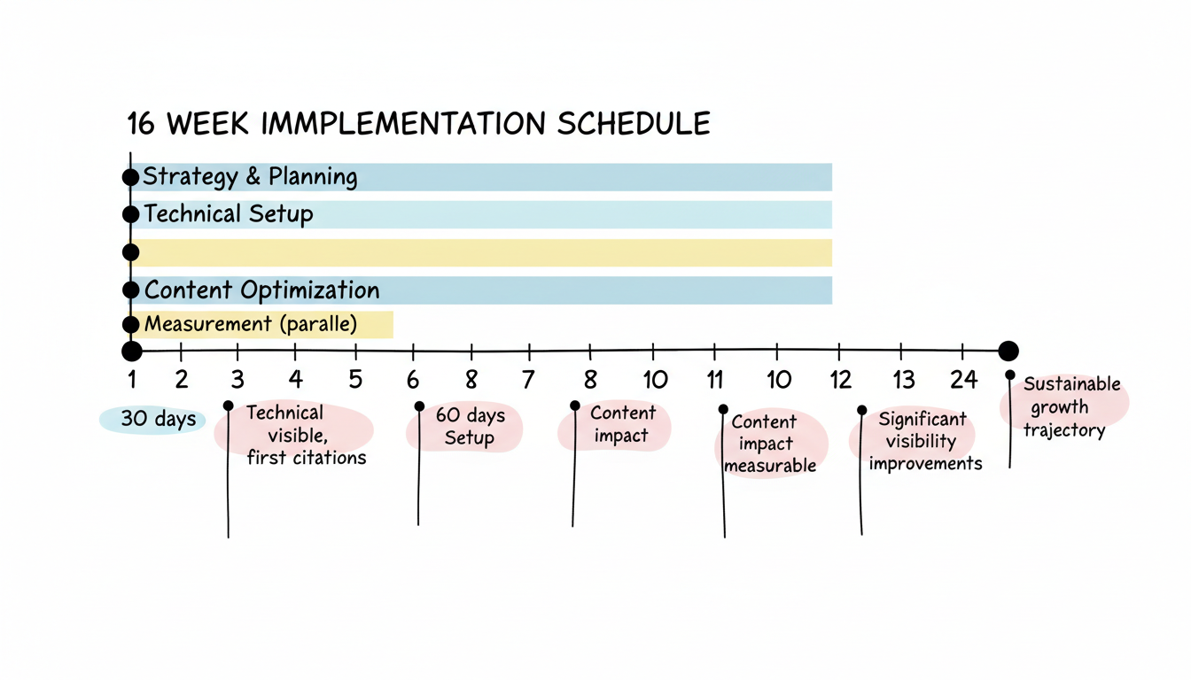 - 30-60 days: Technical improvements visible, initial citation uptick