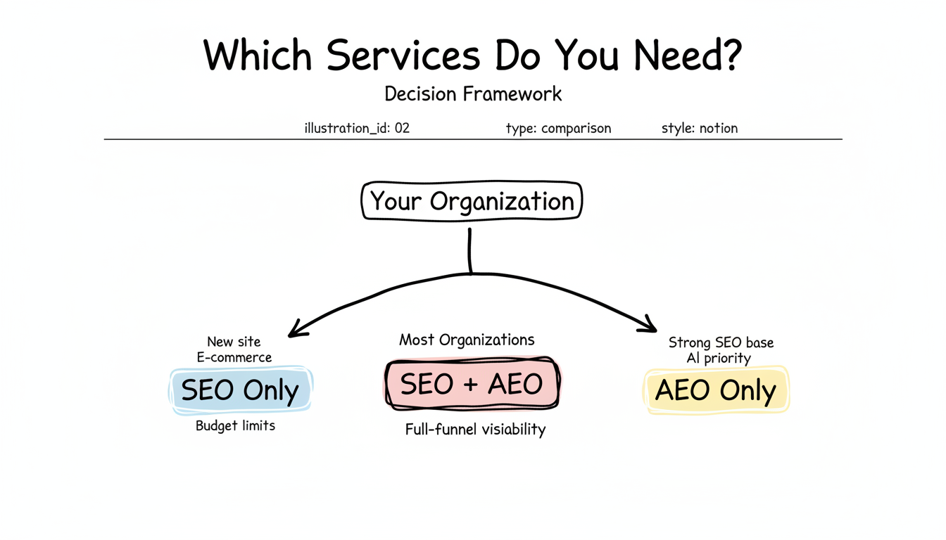 Understanding when to use AEO versus SEO services enables smarter investment: