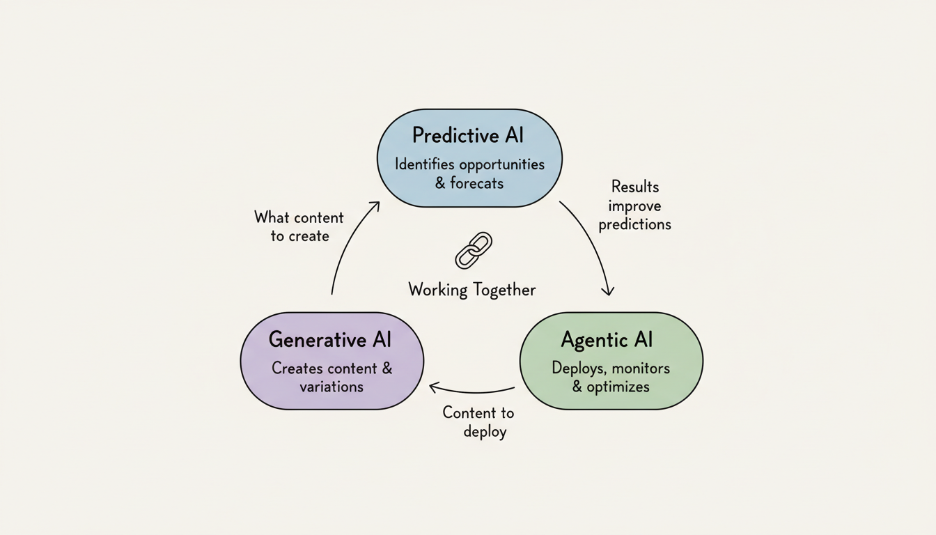 Predictive AI identifies what content to create. Generative AI produces it.