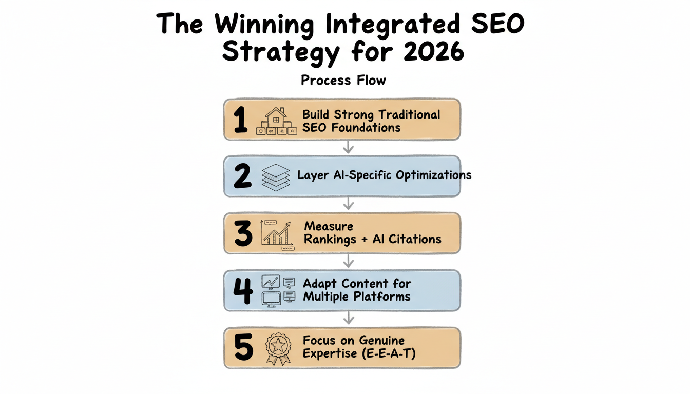 The marketers succeeding in 2026 aren't choosing between traditional SEO and AI SEO—they're doing both. As NoGood's research emphasizes, you cannot skip traditional SEO to go straight to AI optimization.