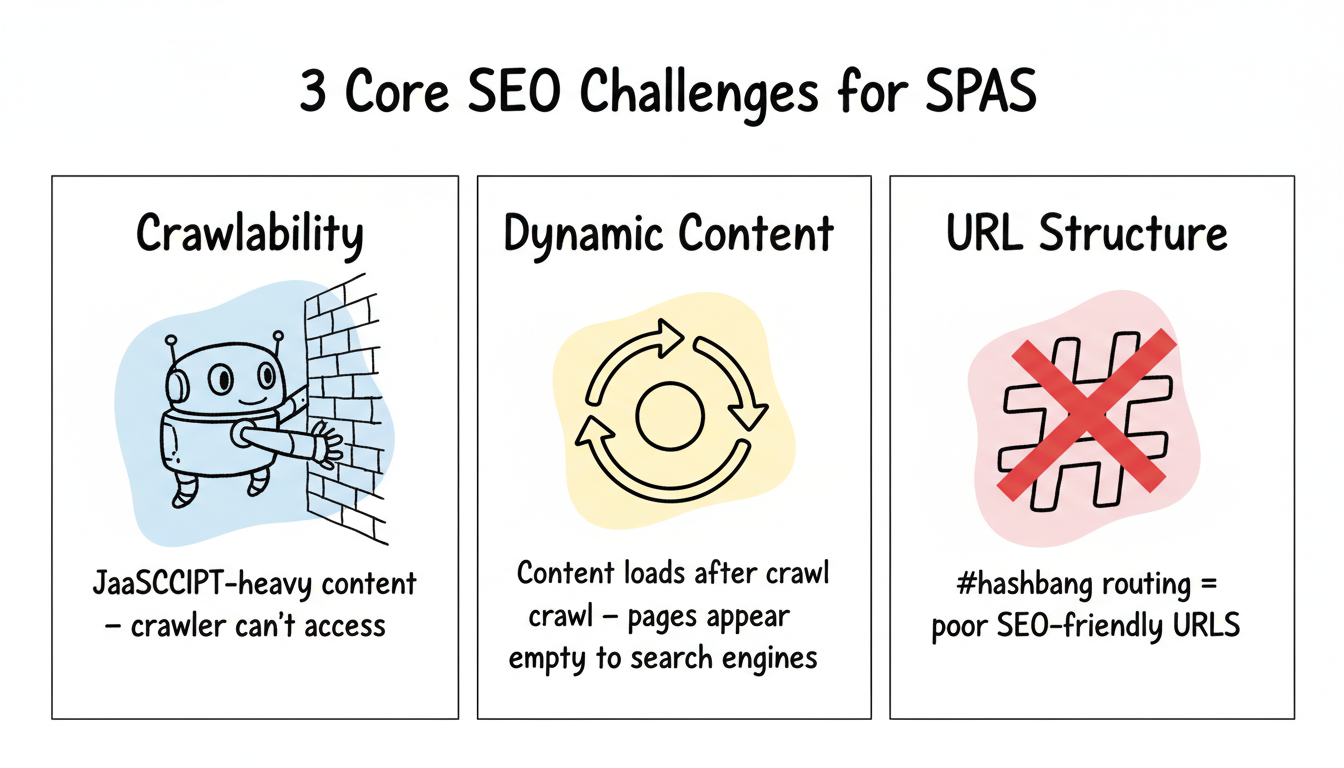 One of the main challenges with SPAs is the lack of crawlability. Search engine crawlers are designed to follow links and index multiple pages to understand the structure and content of a website. However, since SPAs typically consist of a single HTML page, search engine crawlers may have difficulty accessing and understanding the content within the SPA.