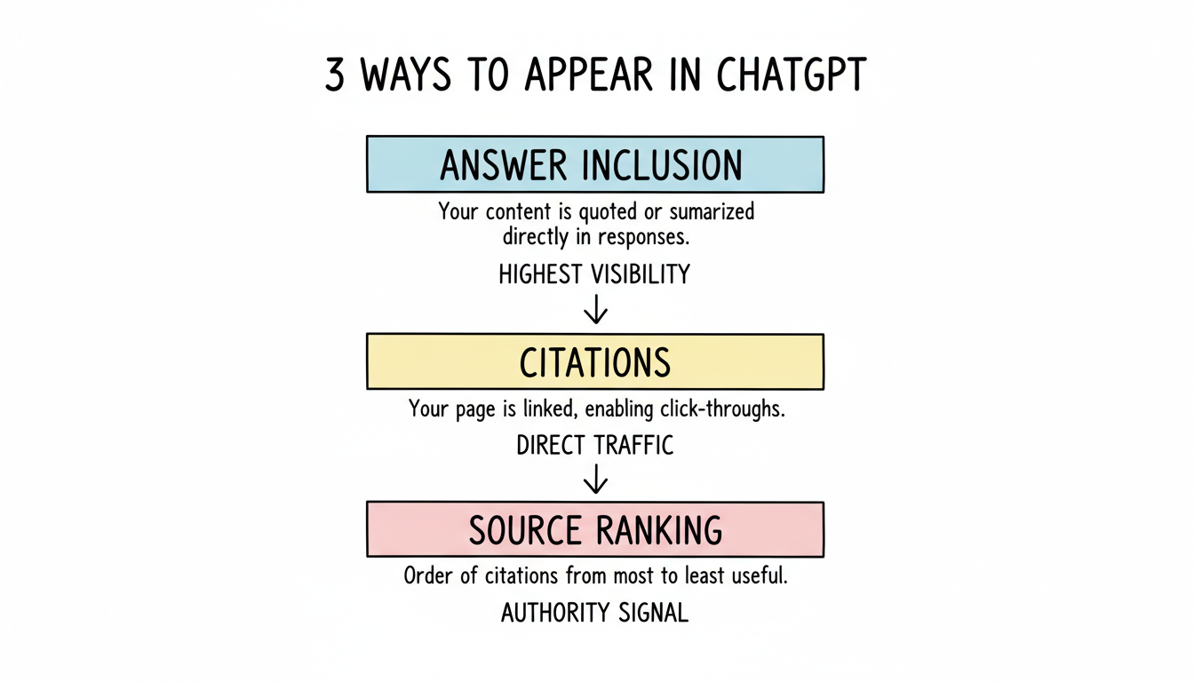 Answer inclusion | Your content is quoted or summarized in responses | Highest visibility |