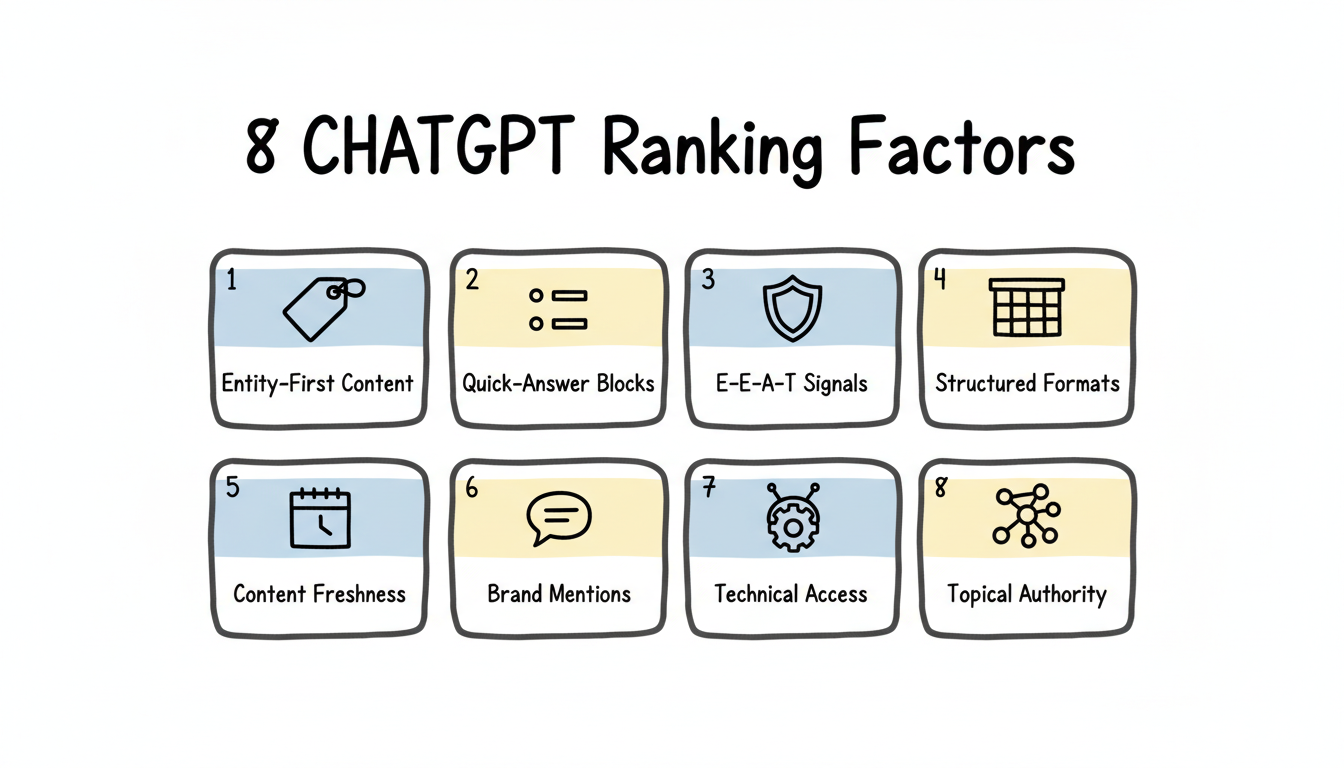 Based on extensive research and industry analysis, eight factors consistently influence ChatGPT citations.