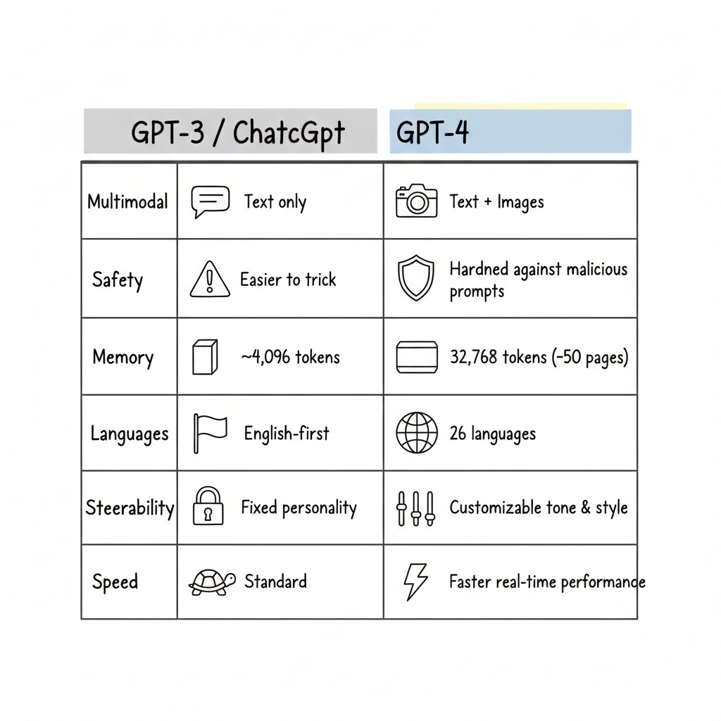 One of the most significant changes in GPT-4 is its ability to understand images. Unlike GPT-3 and ChatGPT, which were limited to text, GPT-4 can process images and find relevant information. This makes it useful for applications like describing images and providing detailed information to people who are blind or have low vision.