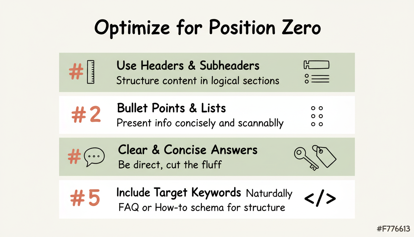 Structuring your content in a way that is easily scannable and provides clear answers to user queries is crucial for ranking in position zero. Google's algorithm looks for content that directly addresses the user's query and provides valuable information. To optimize your content for featured snippets, consider the following strategies: