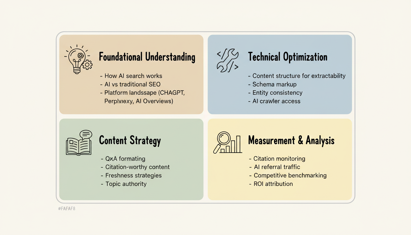 GEO training fills a real gap. Most marketing education doesn't cover AI search optimization. Structured learning accelerates skill development.