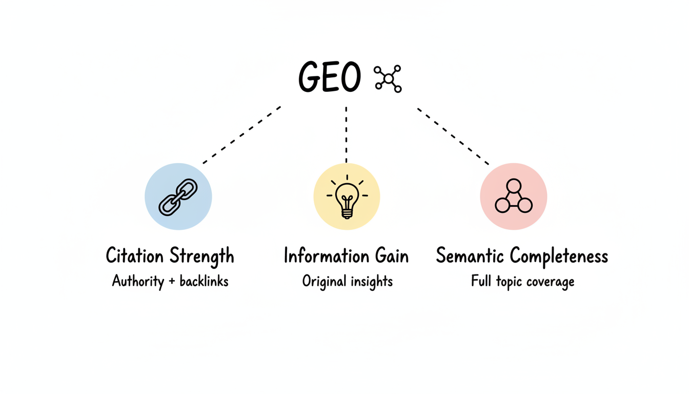 Modern GEO strategy rests on three fundamental pillars: