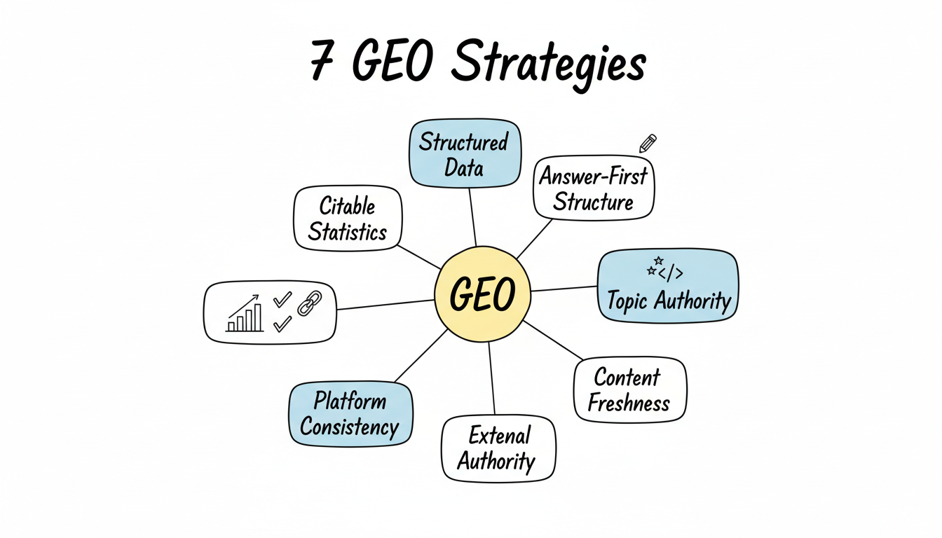 This guide covers the core GEO strategies that drive AI visibility, organized by implementation priority and expected impact.