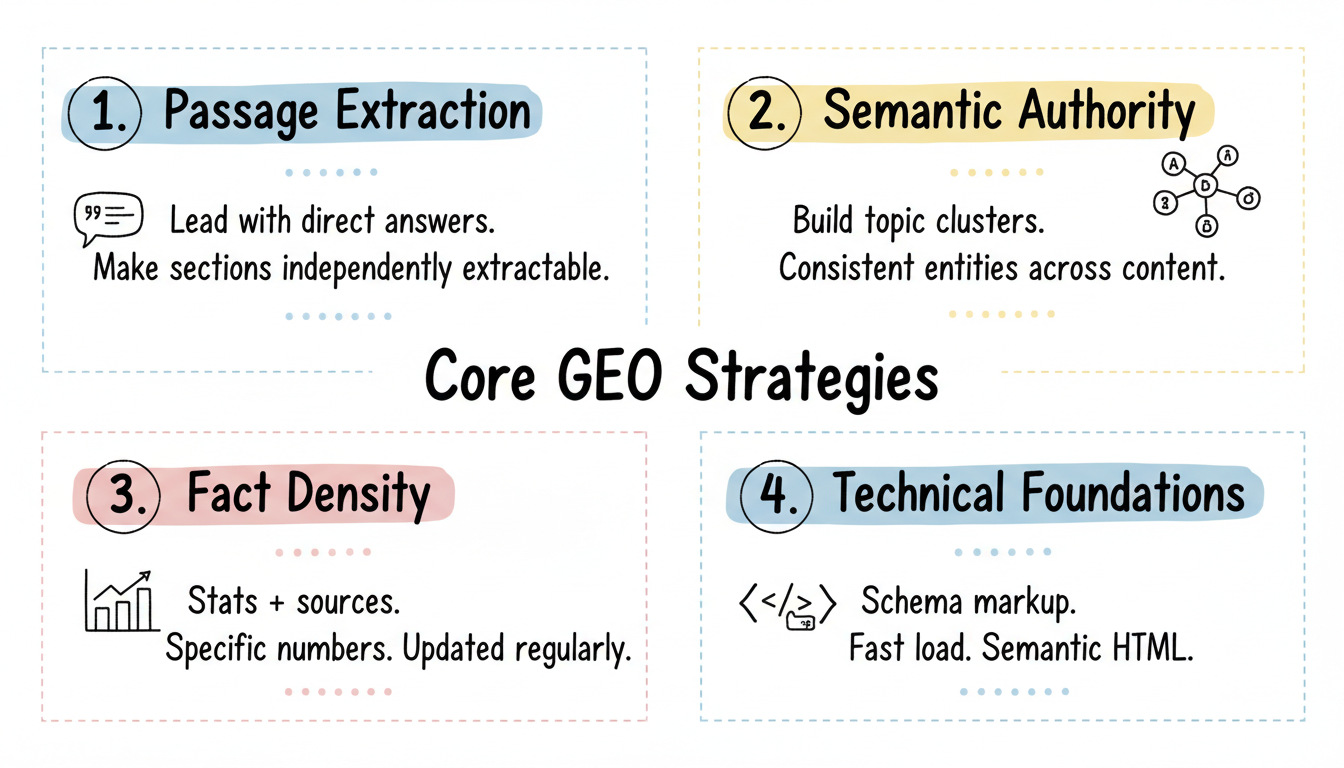 According to Siege Media's GEO guide, AI search engines pull from specific sections rather than evaluating entire pages, making passage-level optimization essential for citations.