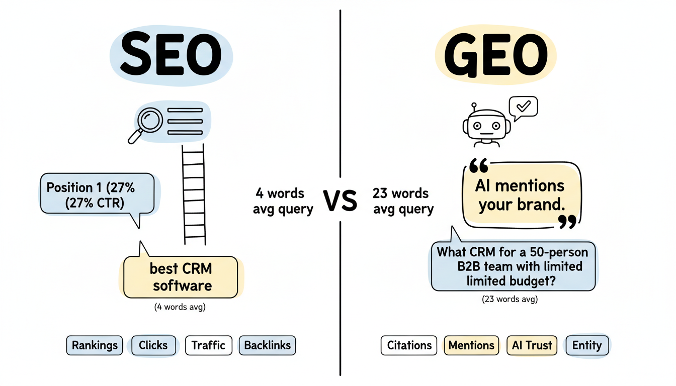 The fundamental difference between SEO and GEO lies in what you're optimizing for.