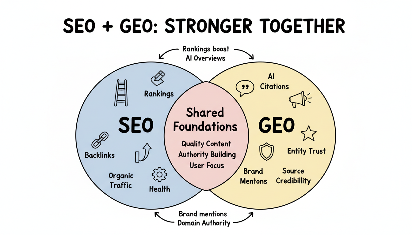 Rather than competing, SEO and GEO complement each other in several ways.