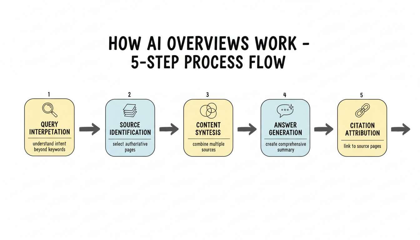 Google's AI Overviews operate through a multi-step process: