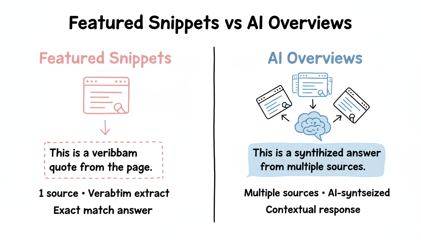 Aspect | Featured Snippets | AI Overviews |