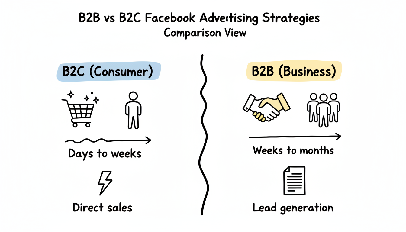 The fundamental difference between B2B and B2C Facebook advertising lies in the buying cycle and decision-making process.