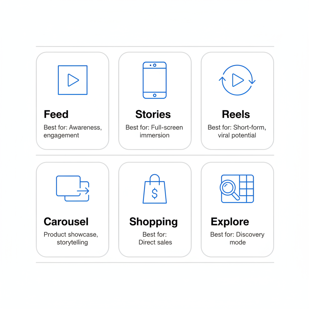Instagram supports diverse ad formats for different objectives: