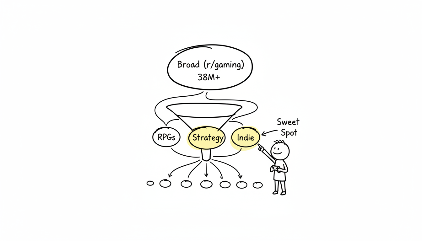 Strategic subreddit targeting is the key to successful gaming campaigns on Reddit. Here's how to approach it: