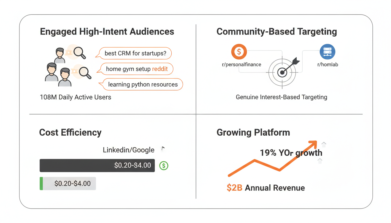 Reddit's advertising platform is built around a self-serve model that allows businesses of any size to reach the platform's unique audience. Unlike traditional social networks where content often disappears quickly, Reddit conversations persist and compound over time, making advertising investment more valuable.