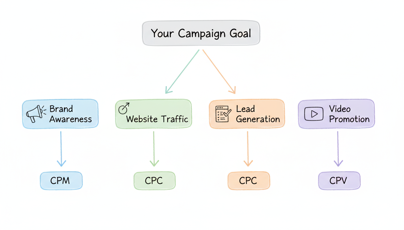 Maximize reach/awareness | CPM | Pay only for visibility, get broad exposure |