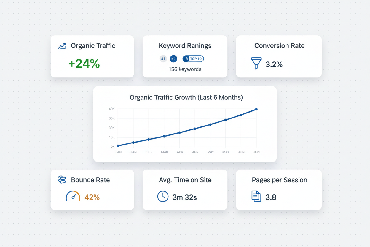 Businesses should track metrics such as organic traffic, keyword rankings, bounce rate, conversion rate, and average time spent on the website. These metrics help businesses assess the impact of their SEO efforts and identify areas for improvement.