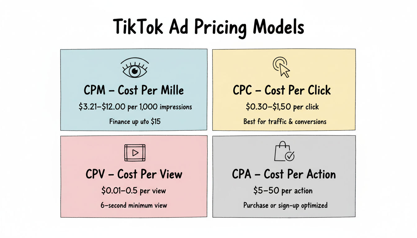 TikTok offers several bidding and pricing models depending on your campaign objectives. Understanding these models helps you budget accurately and optimize for your specific goals, whether you're following a comprehensive TikTok marketing strategy or running your first test campaign.