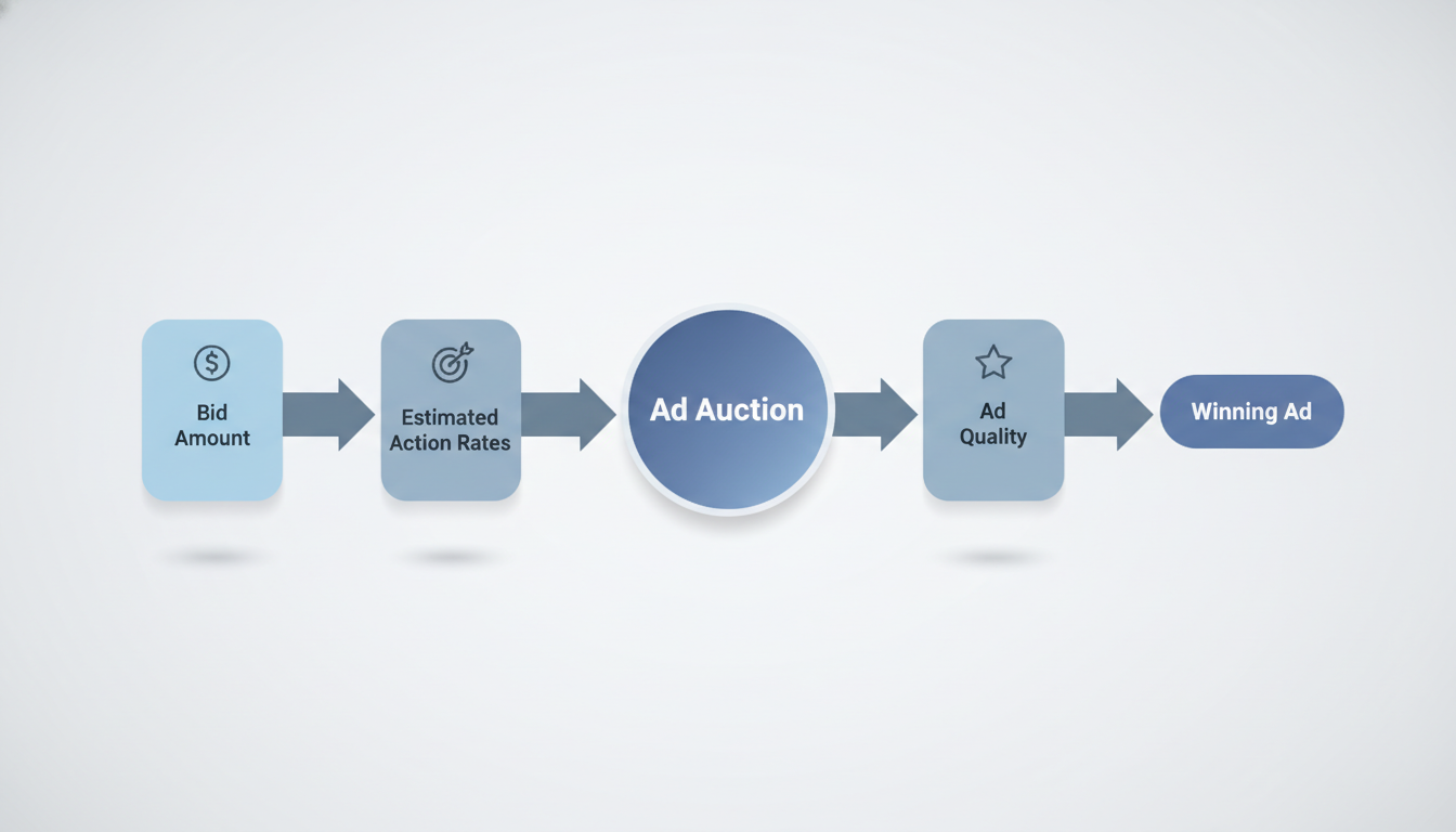 Meta ads operate on an auction model. When there's an opportunity to show an ad, Meta runs an auction among all advertisers targeting that user. The winner isn't just the highest bidder—Meta considers: