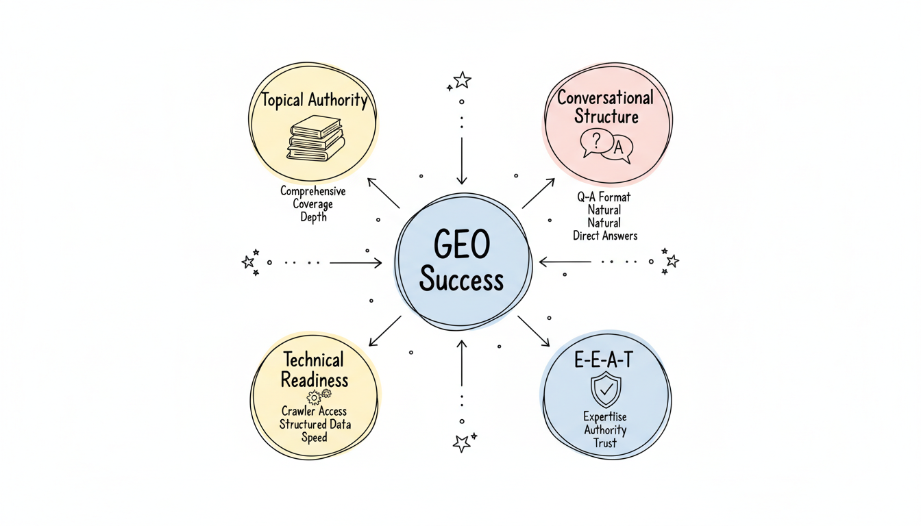 GEO optimization operates differently from traditional SEO. Instead of optimizing for position in ranked lists, GEO focuses on becoming a source AI systems trust enough to quote and recommend.